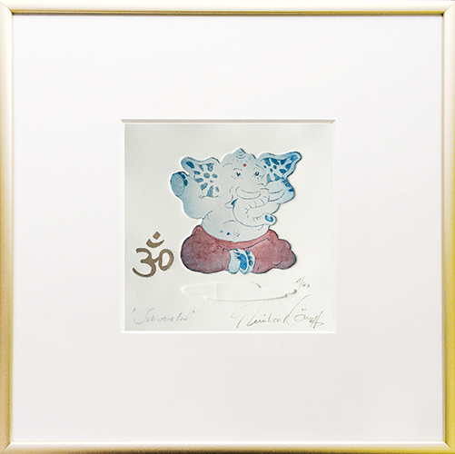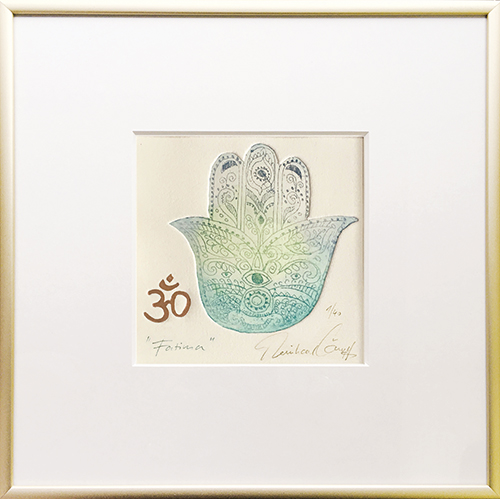 Prägeradierung auf 350g Hahnemühle-Büttenpapier, handcoloriert, handsigniert |